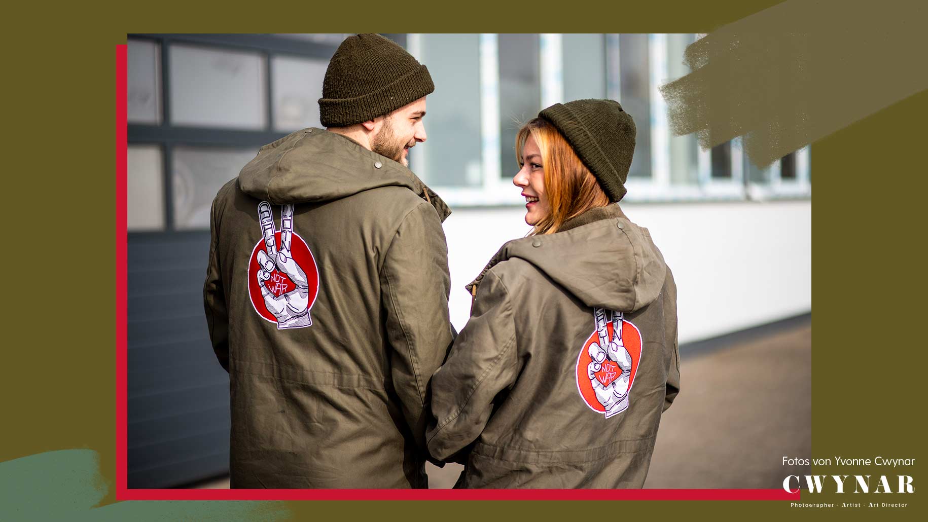 2 Hand-Illustrationen (Hauptmotiv + Emaille-Pin-Variante), Schriftzug „Say Moin Not War", Special Edition Trikot-Design, Druckdaten und Stickdateien für über 15 Vintage-Artikel + 5–10 Neuprodukte (Pins, Becher, etc.)